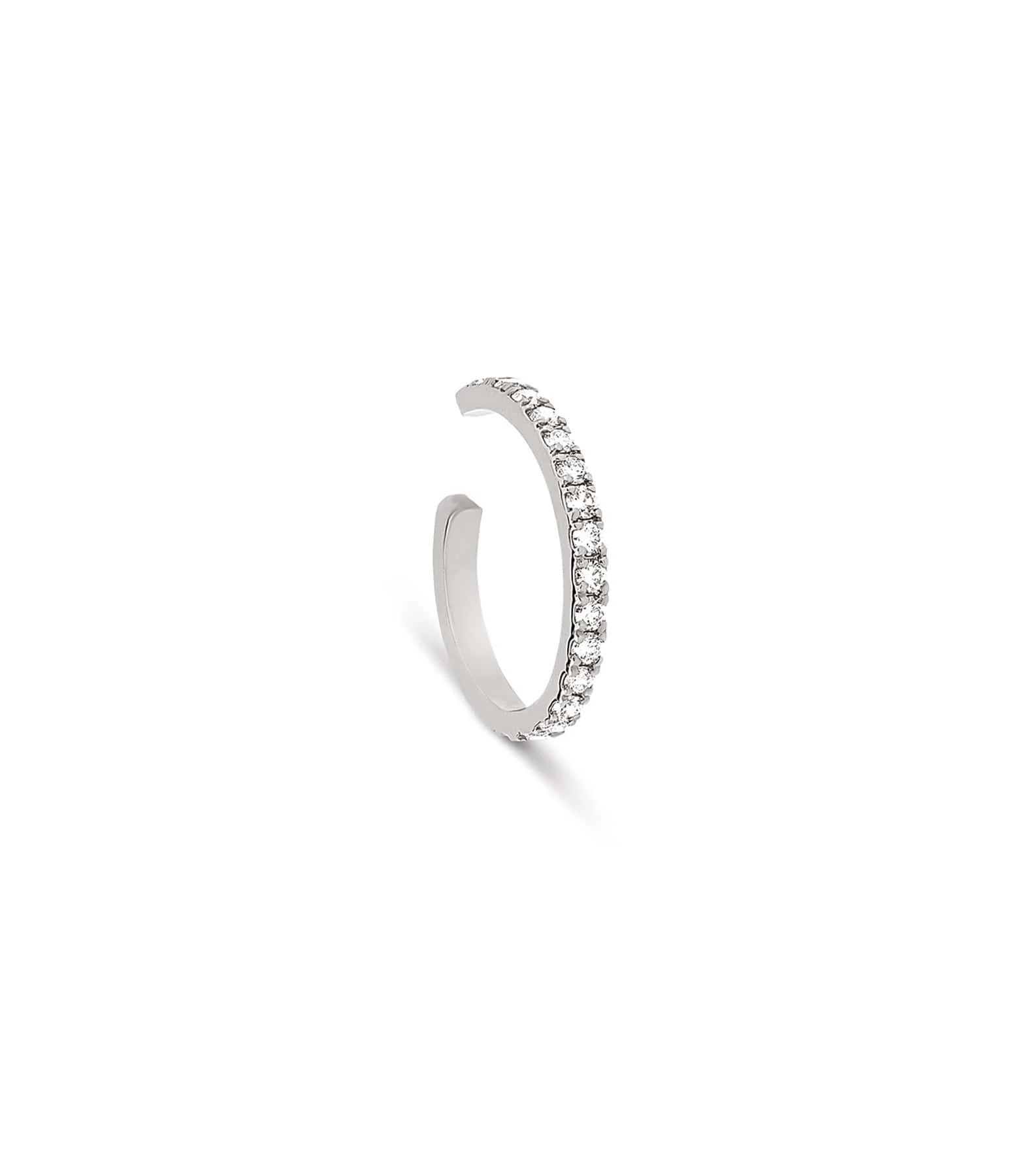 Bijou d’oreille en or blanc serti de diamants ronds. Se porte ajusté sur la partie latérale de l’oreille.