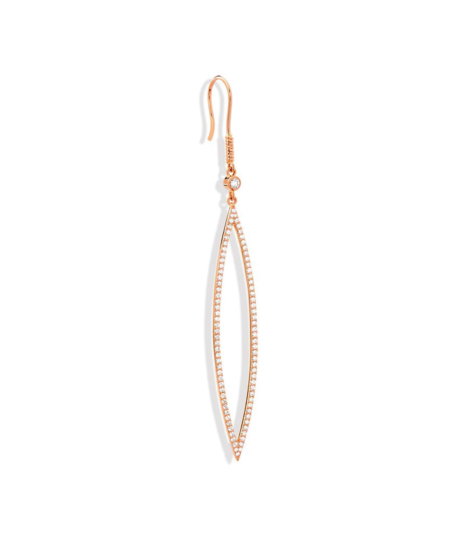 Boucle d’oreille pendante en or rose sertie de diamants.