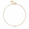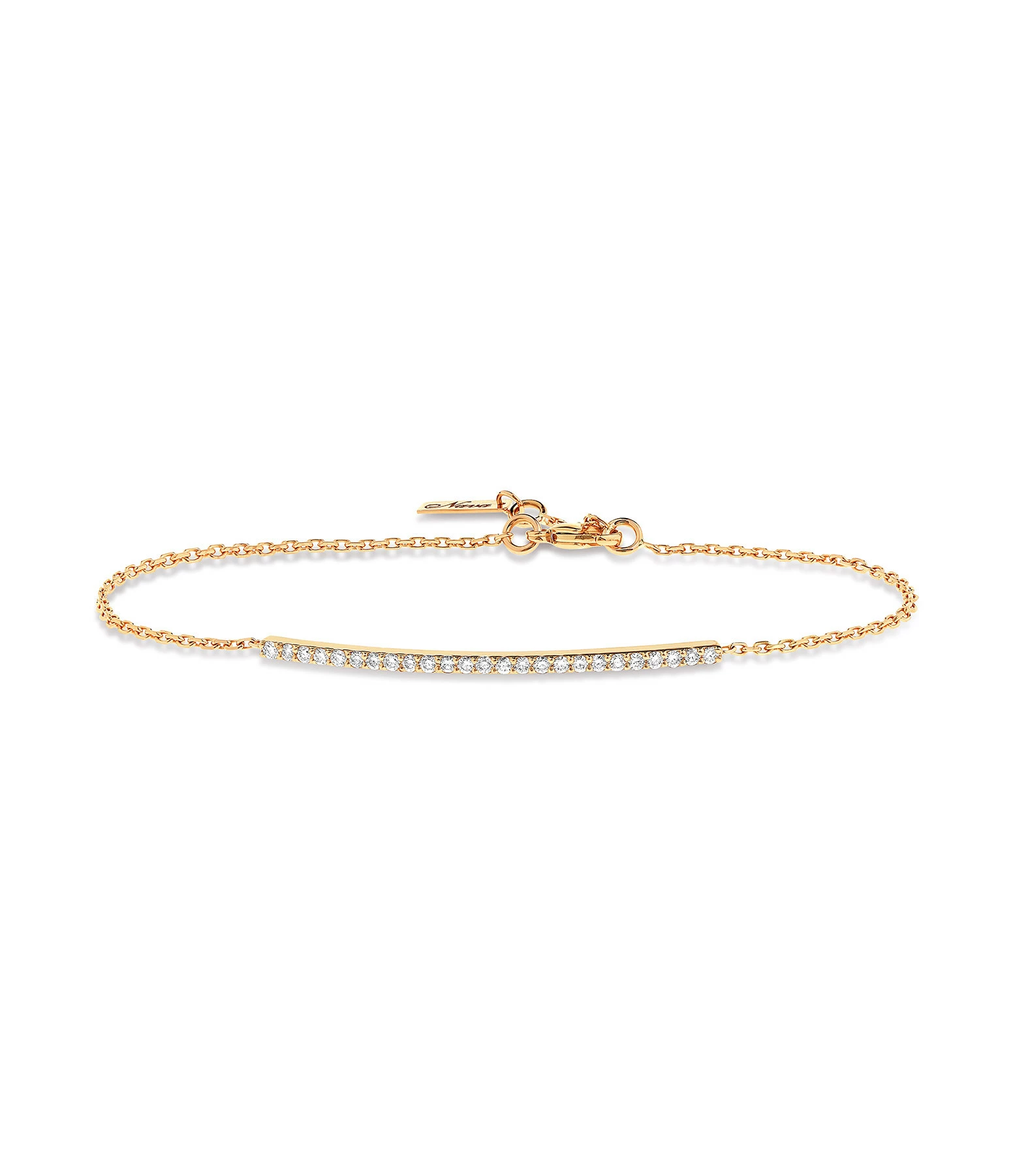 Bracelet chaîne en or jaune avec barrette ornée de diamants ronds. Fermoir à ressort avec contre-anneau.