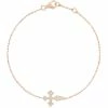 Bracelet chaîne en or blanc avec croix sertie de diamants ronds. Fermoir à ressort avec contre-anneau.