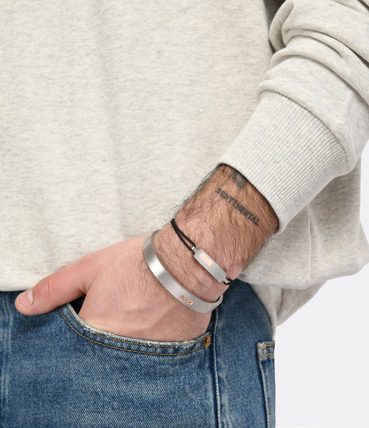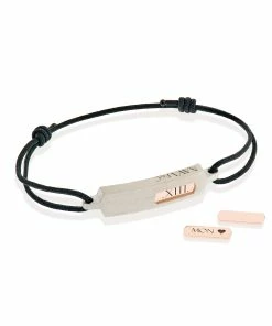 Possibilité de personnaliser le bracelet avec une gravure du mot de votre choix sur la plaque en or rose.