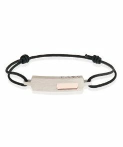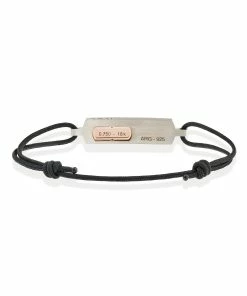 Bracelet pour homme sur cordon noir. Plaque en argent et or rose.