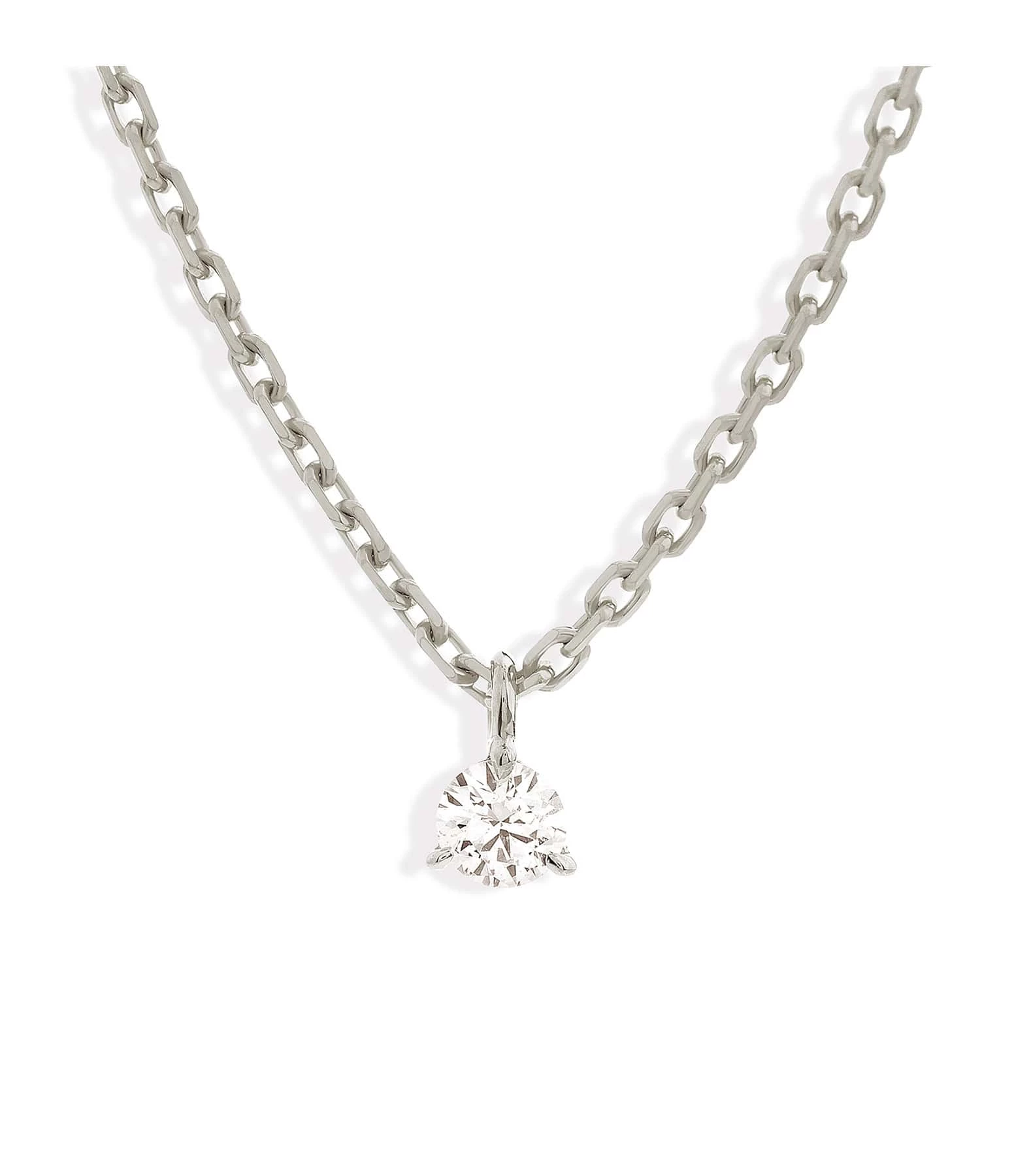 Collier en or blanc avec un diamant rond serti en pendentif. Fermoir à ressort avec chaînette de réglage.