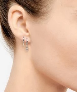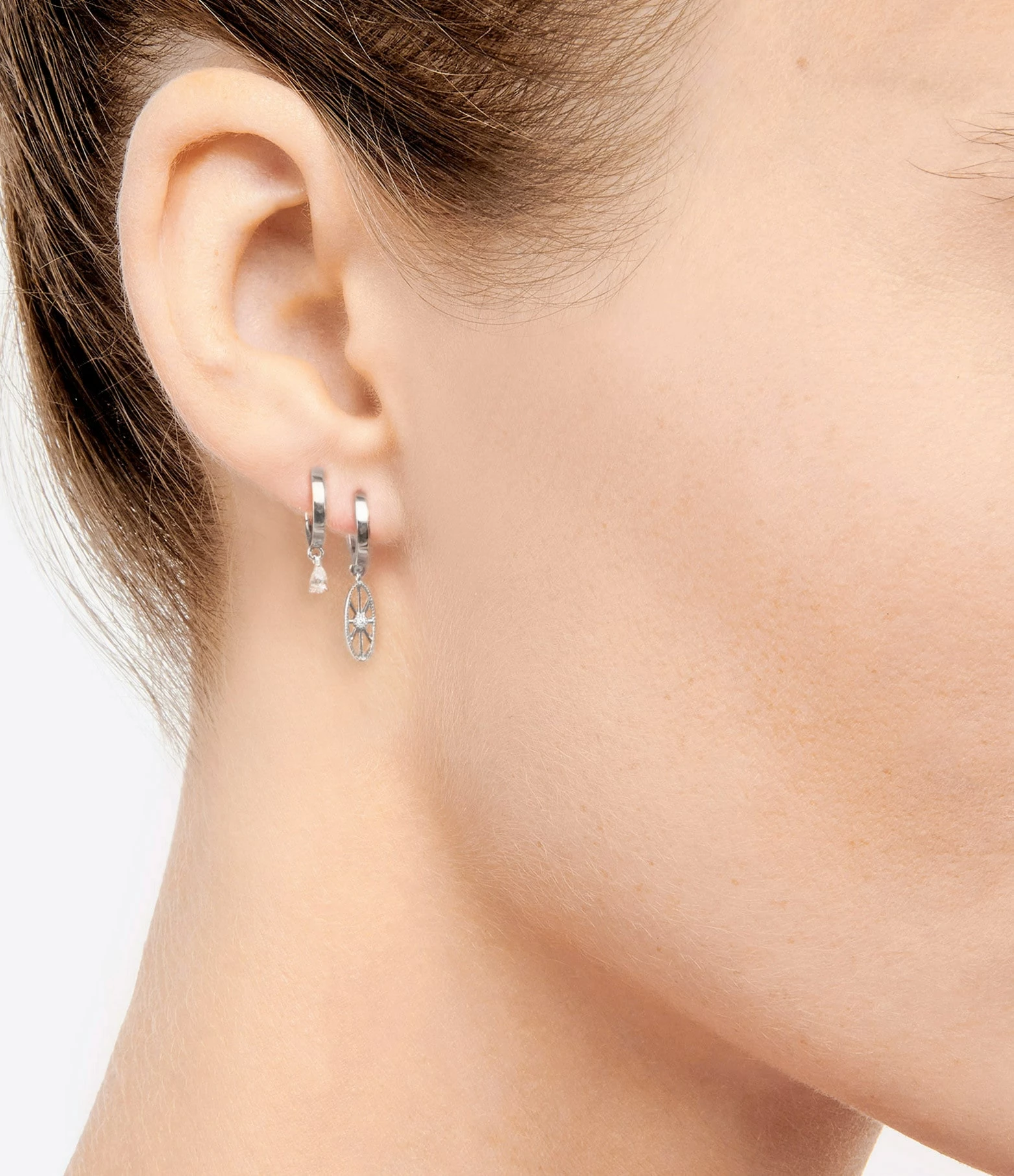 Boucle d’oreille en or blanc avec pendentif ovale serti d’un diamant rond. Fermoir à cliquet.