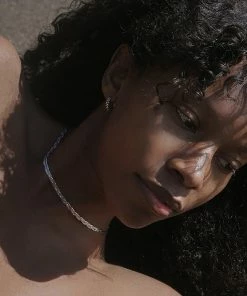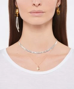 Collier en chaîne chevron tressée en argent, un côté mat, un côté brillant. Se positionne parfaitement le long de la clavicule. Chaînette de réglage de 5 cm.