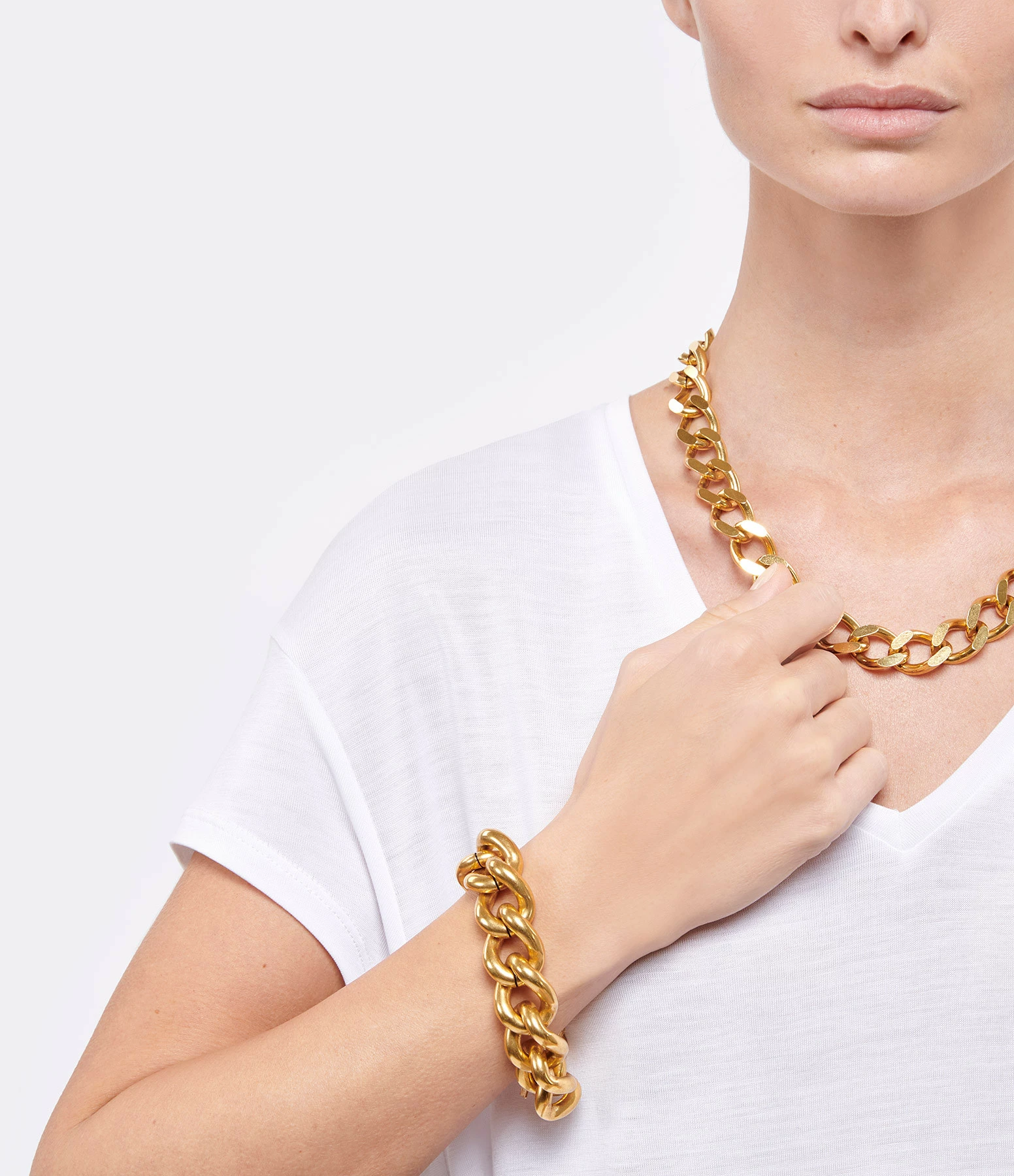 Bracelet en laiton doré patiné, maillons ovales. Fermoir à cliquet ovale.