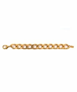Bracelet gourmette en laiton doré, maillons plats. Fermoir classique à cliquet ovale.