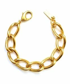 Bracelet en laiton doré. Maillons imposants et plats. Fermoir à ressort.