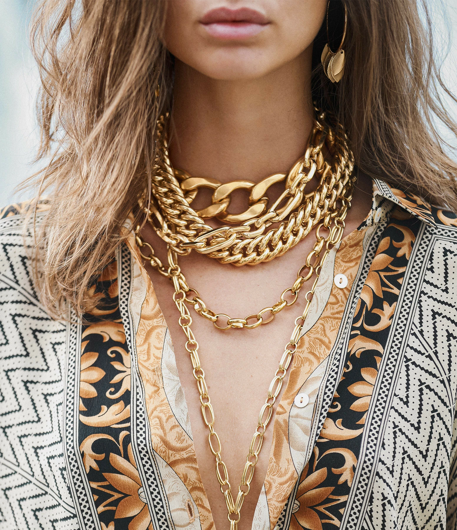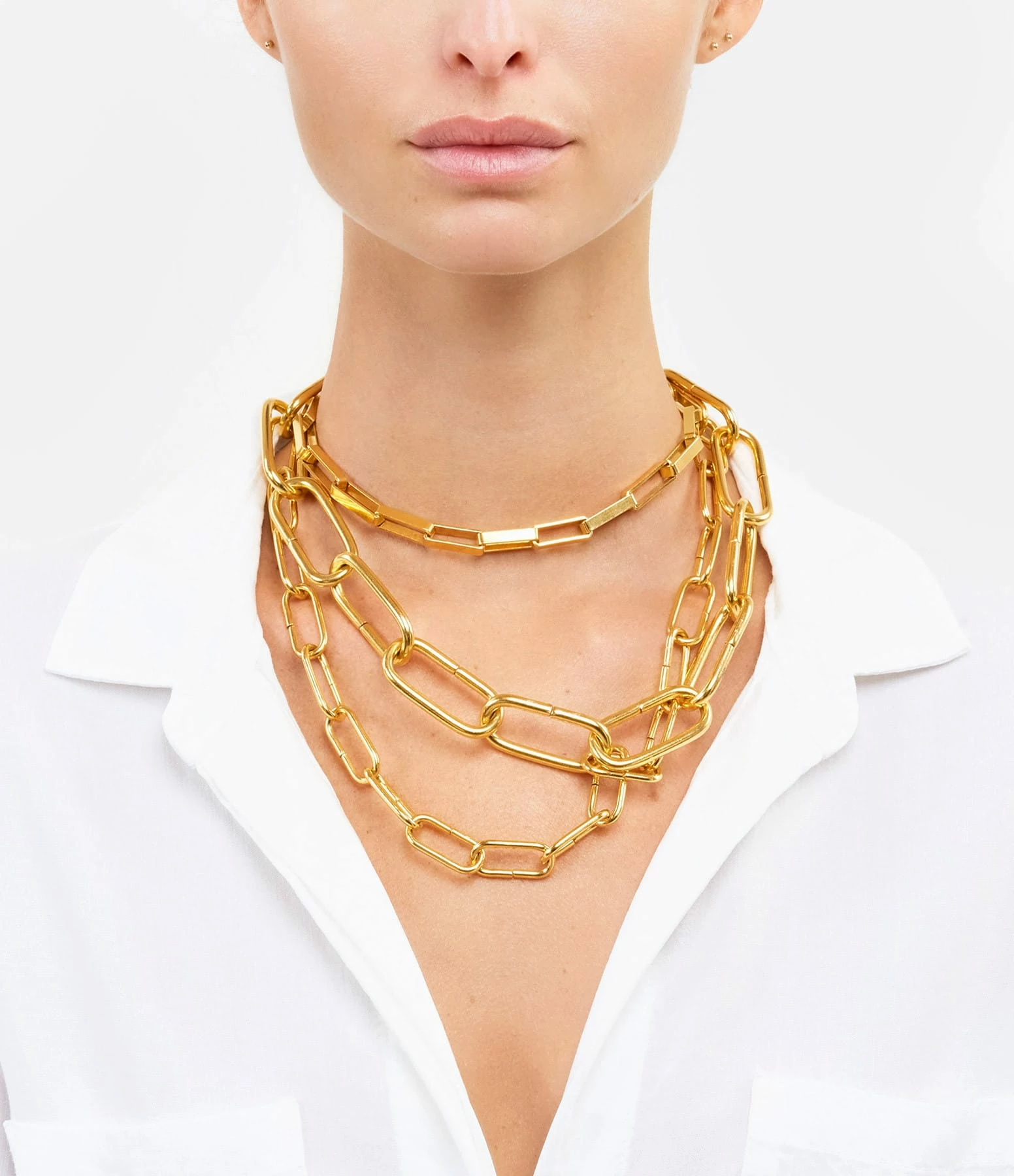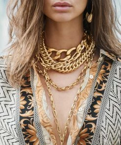 Collier ras de cou en laiton doré, triple chaîne, donnez l’illusion de porter une multitude de bijoux en en portant qu’un. Fermoir à cliquet ovale.