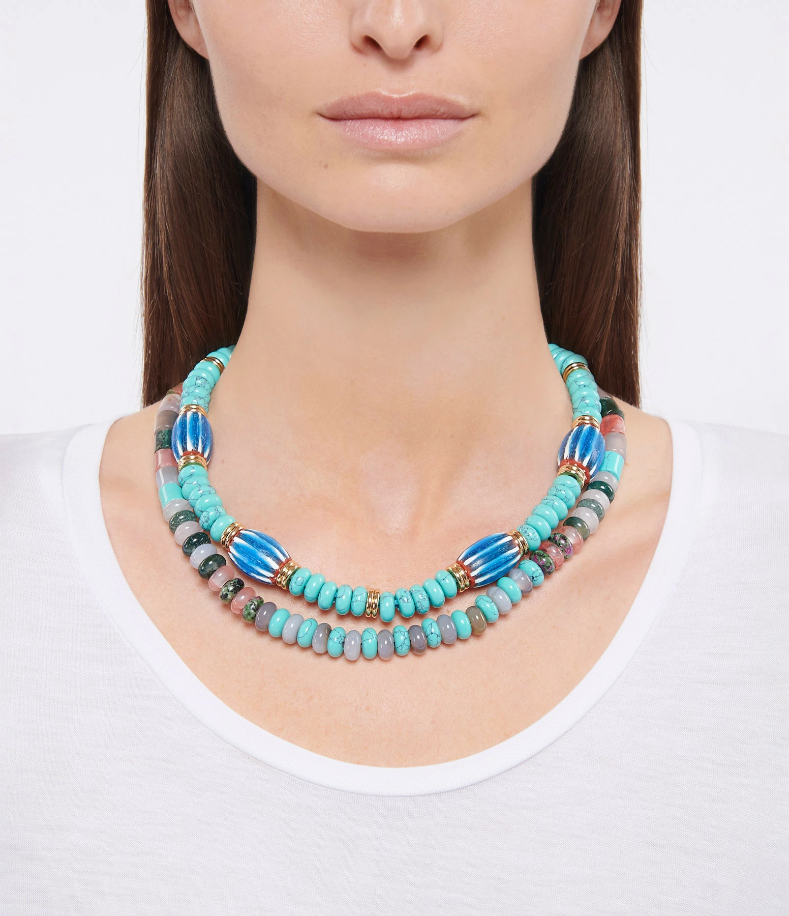 Conseil Stylistique :Les colliers SUNSET peuvent être portés en version « mi- long » ou « ras de cou » pour s’adapter à chaque tenue.