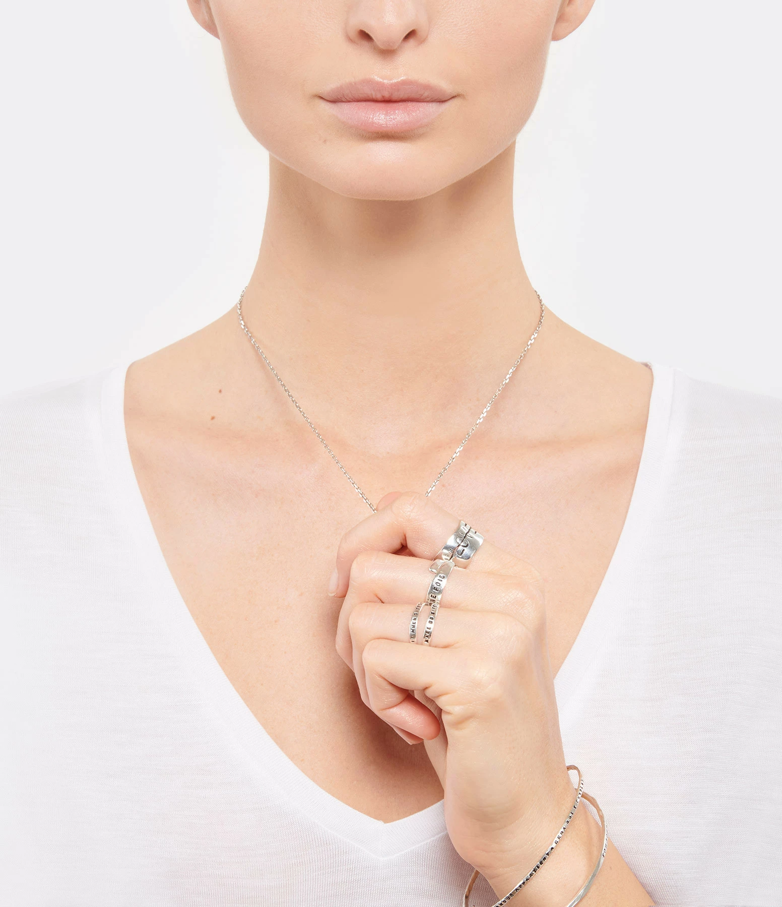 Deux bagues en argent avec gravure “Love is when differences” et “Make no difference”.