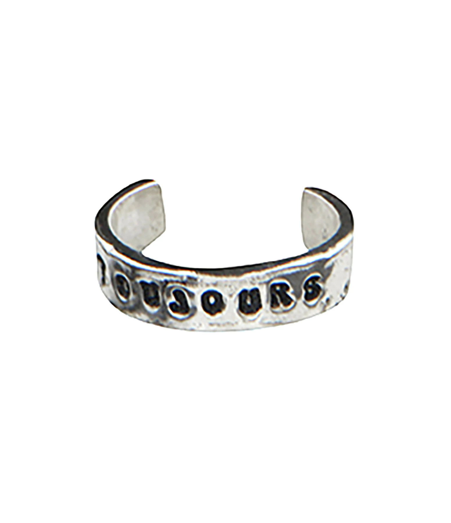 Bague d’oreille en argent, avec inscription “TOUJOURS”. Se porte ajustée sur la partie latérale de l’oreille.