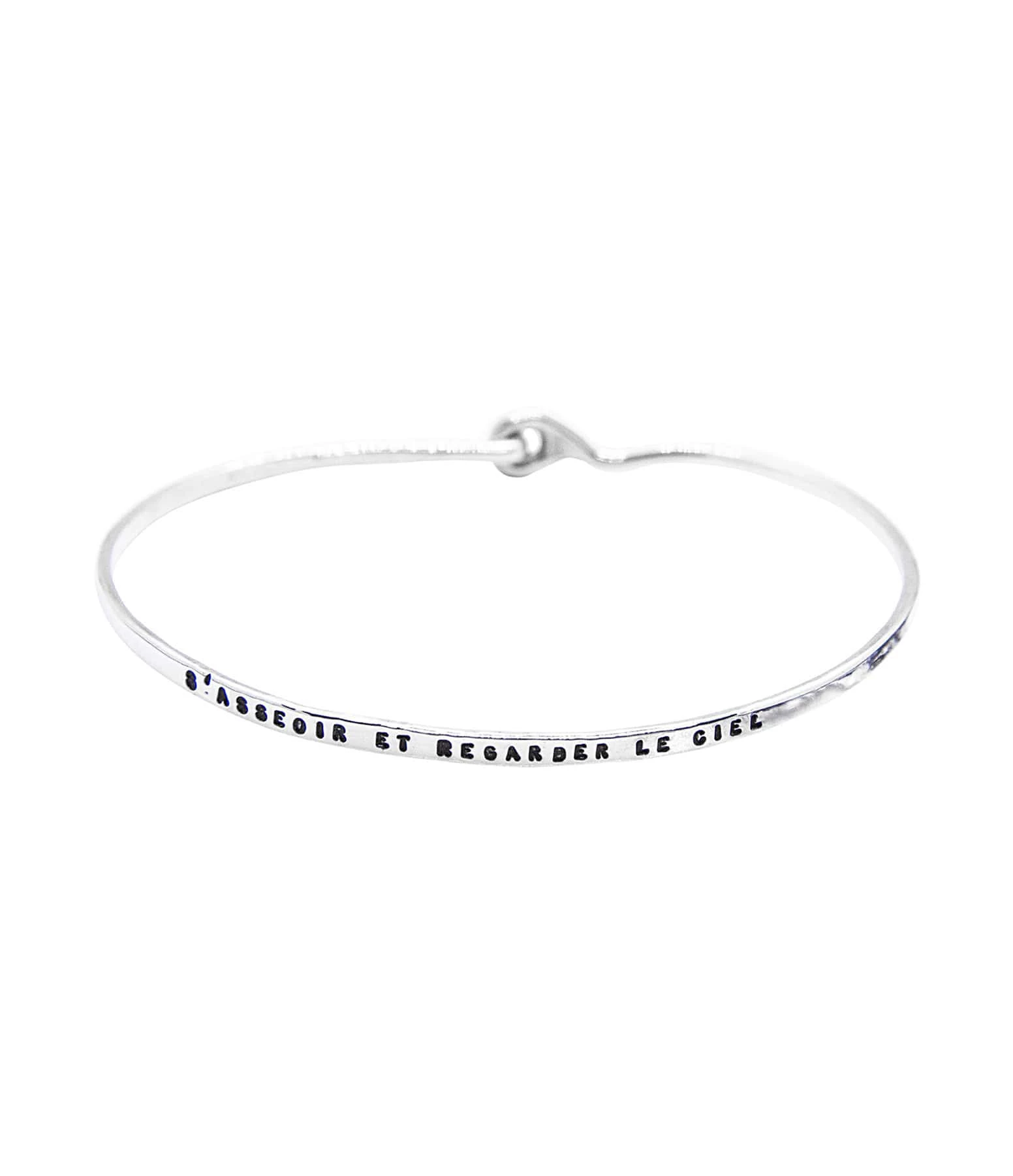 Bracelet en argent avec gravure “S’asseoir et regarder le ciel”. Fermoir crochet.