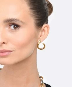 Boucles d’oreilles dorées. Fermoir poussette. Vendues à la paire.