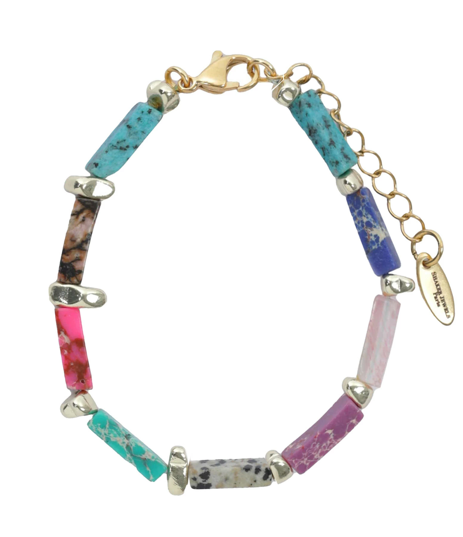 Bracelet en perles rectangulaires naturelles multicolores. Fermoir classique à ressort.