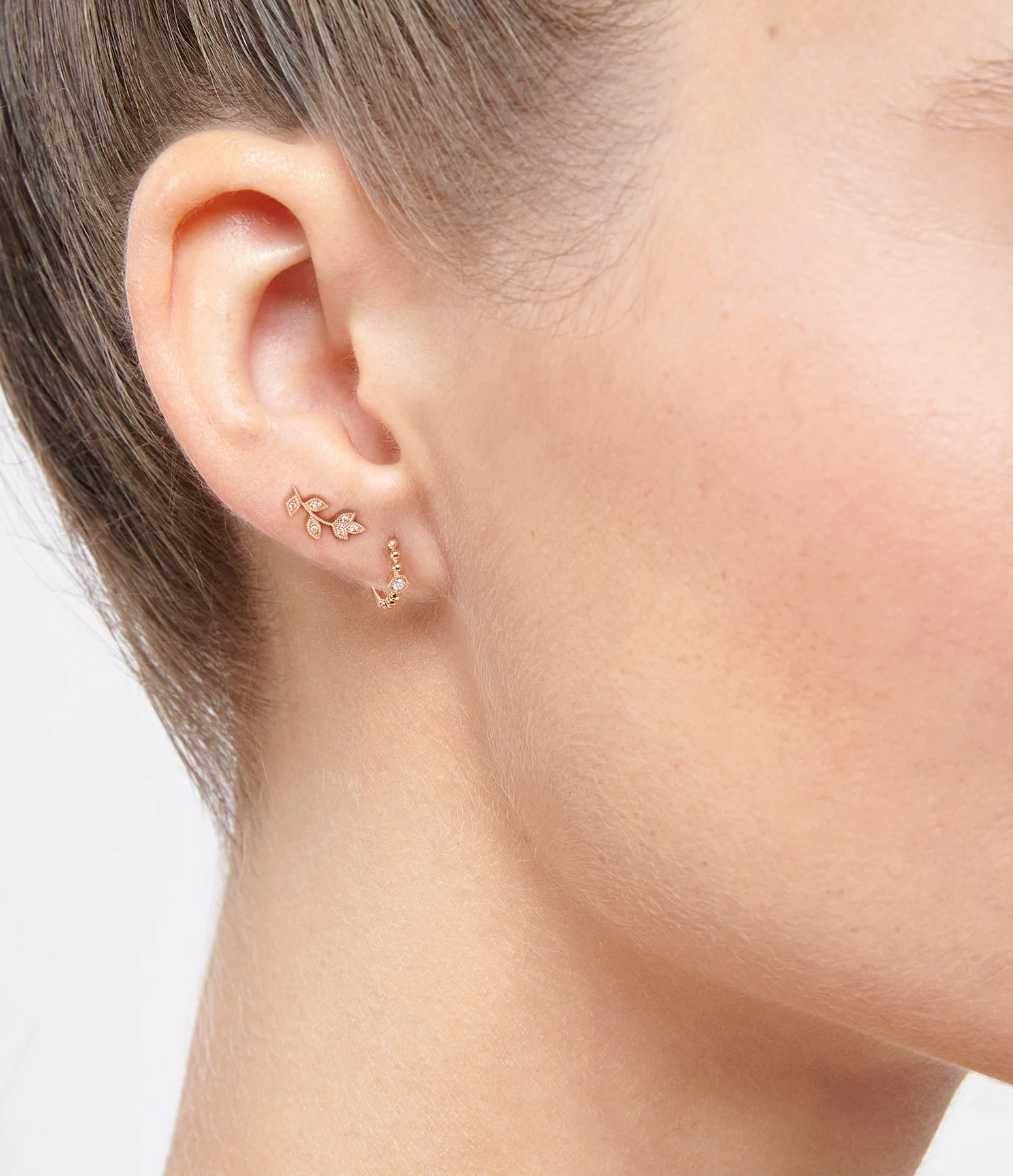 Conseil stylistique : La collection Bloom nous enchante avec des pièces délicates et lumineuses. Le motif principal se dévoile avec des feuilles toute en finesse et serties de diamants blancs. Ces boucles d’oreilles peuvent s’accorder à la bague Bloom pour une parure élégante et raffinée.