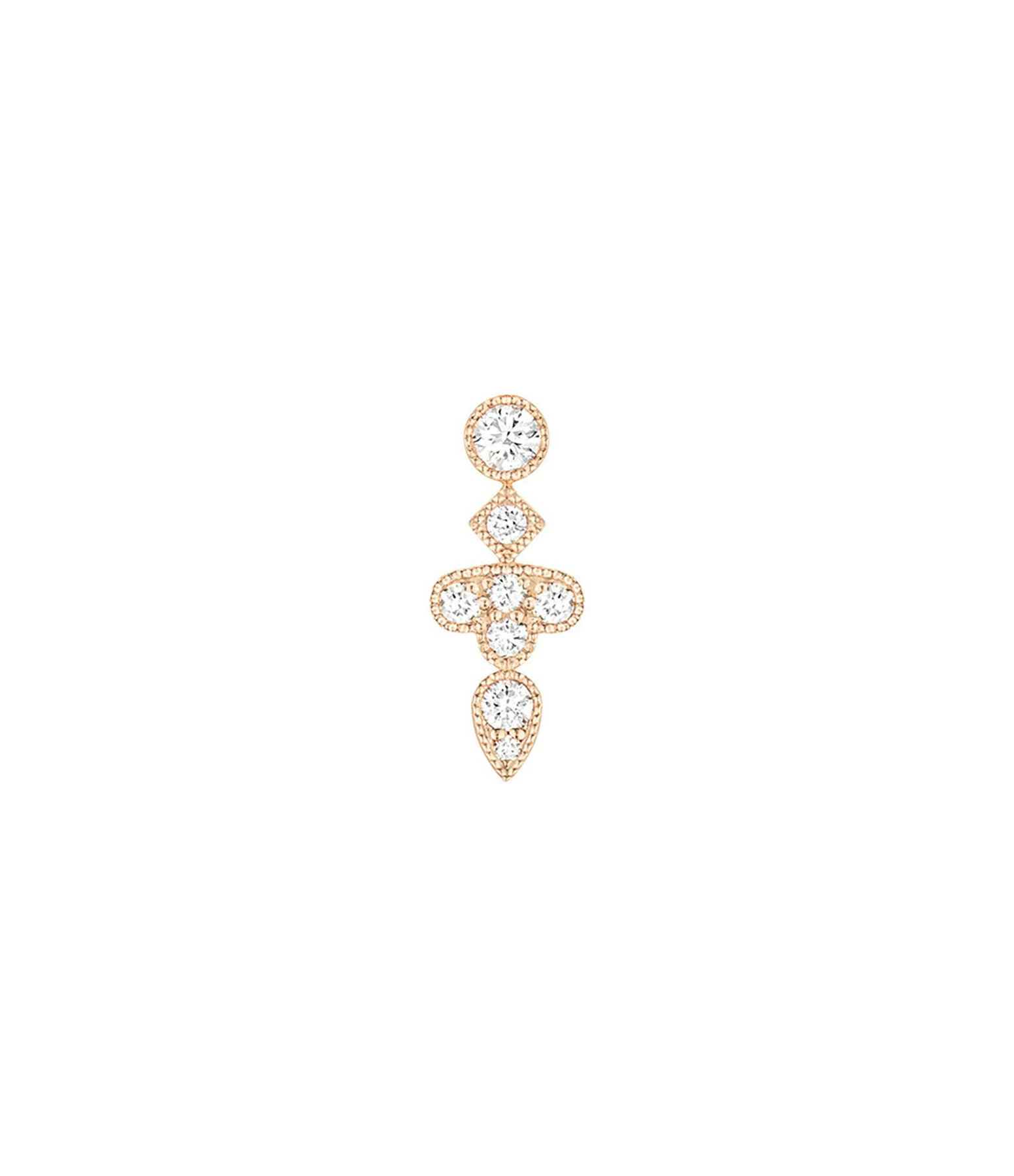 Boucle d’oreille en or rose. Motif floral serti de diamants. Fermoir ALPA sécurisé.