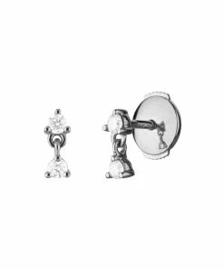 Boucle d’oreille puce en or sertie de deux diamants blancs. Fermoir ALPA sécurisé.