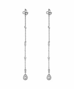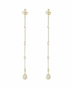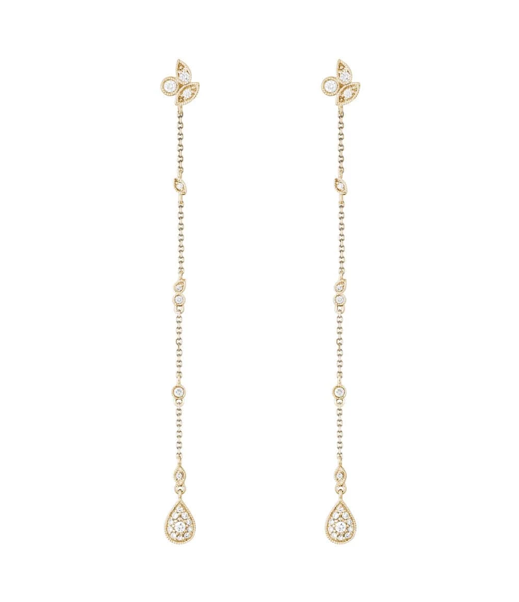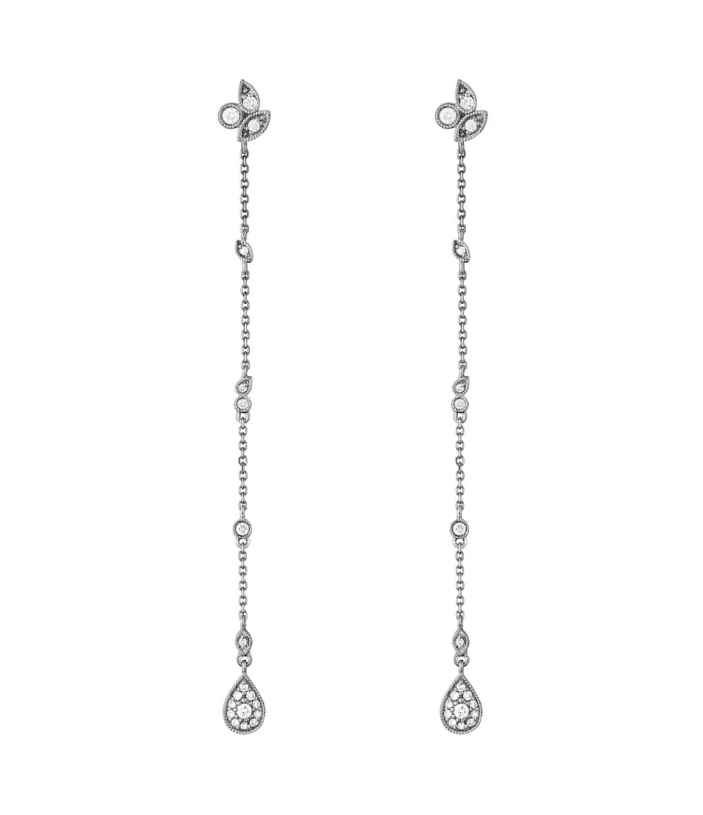 Boucles d’oreilles longues sur chaîne en or serties de 38 diamants. Fermoirs ALPA sécurisés.