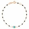 Bracelet en or rose avec une fleur sertie de huit diamants blancs. Fermoir classique à ressort avec un contre-anneau.