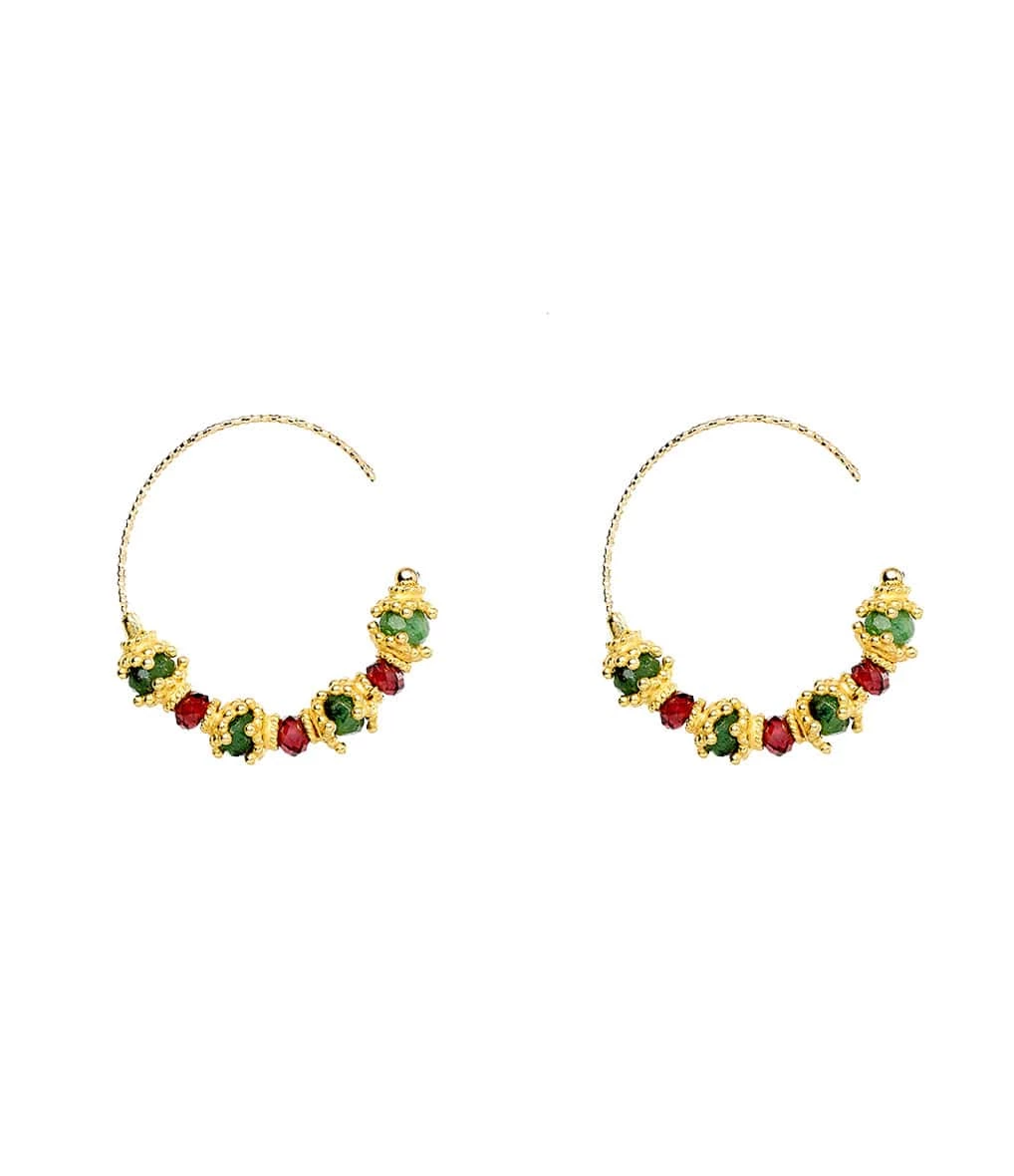 Créoles en plaqué or fin, agrémentées de perles en Rubis-zoïsite.