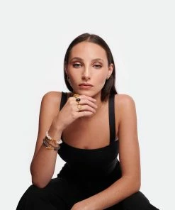 Composition : Pierre onyx noir taillée et gravée, monture argent massif doré.