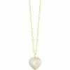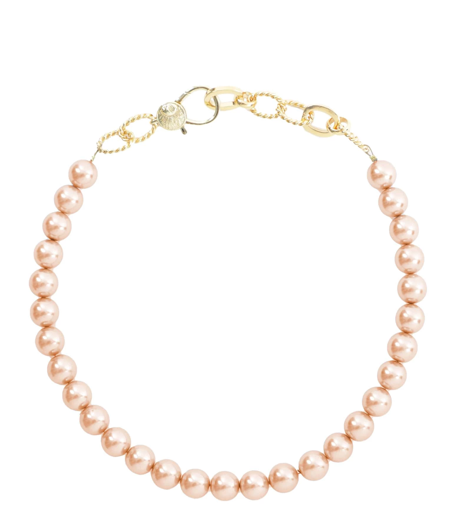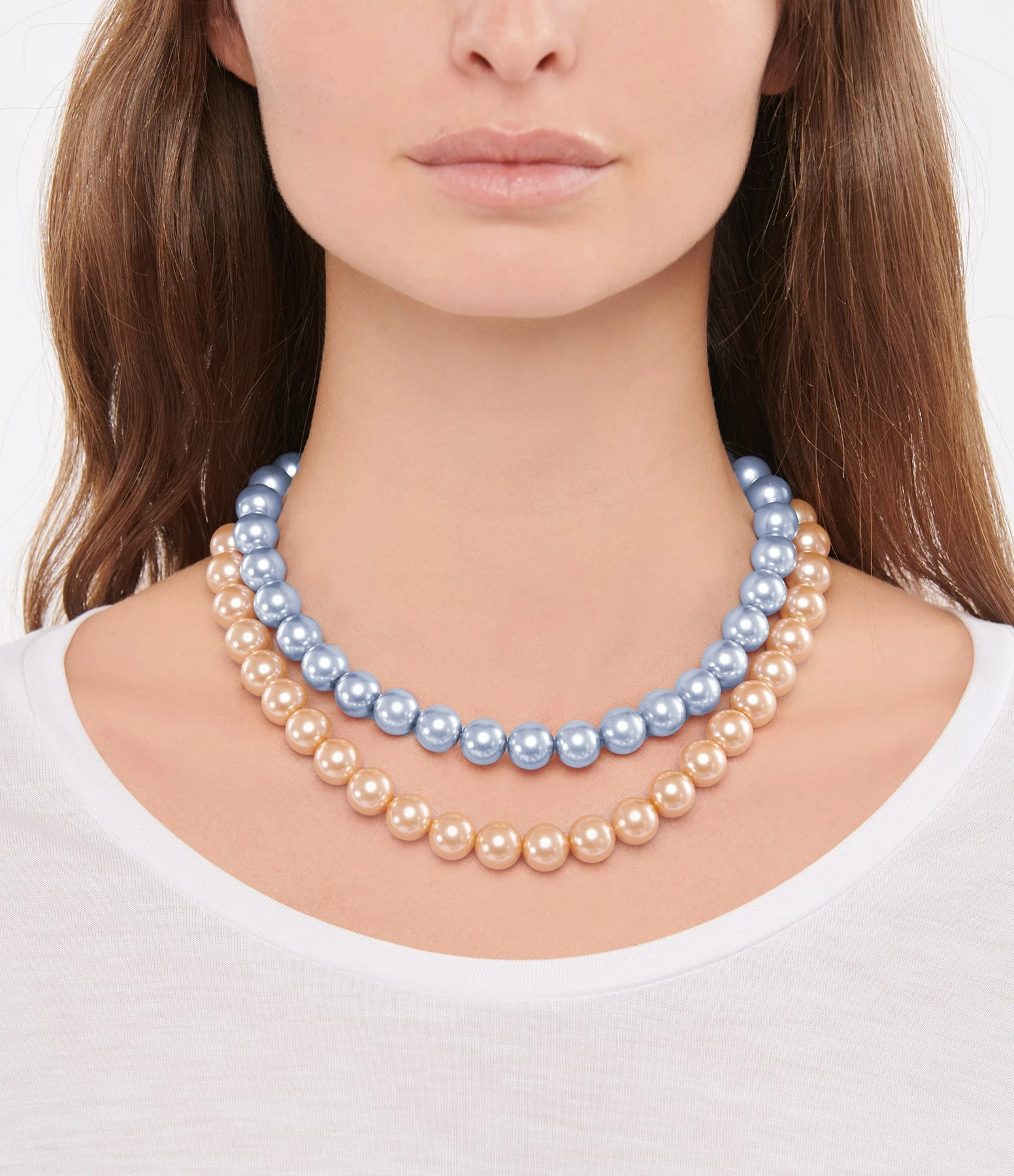 Collier en perles orangées nacrées sur chaîne en argent doré. Fermoir classique à ressorts.