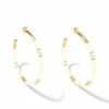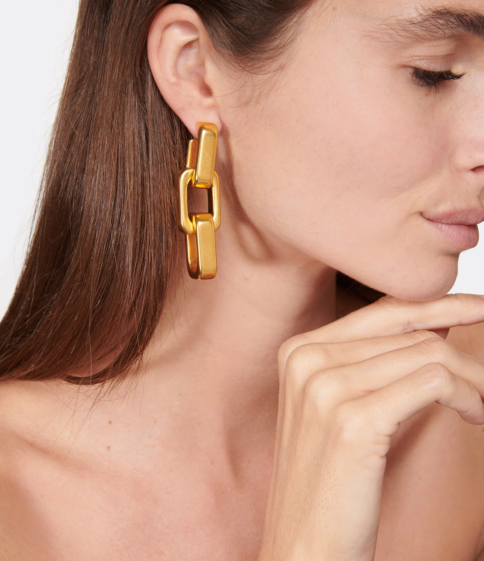 Boucles d’oreilles dorées à triple maillons rectangulaires. Fermoir poussette.