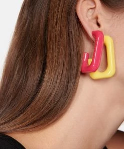 Créoles jaunes à maillons rectangulaires. Fermoir poussette.