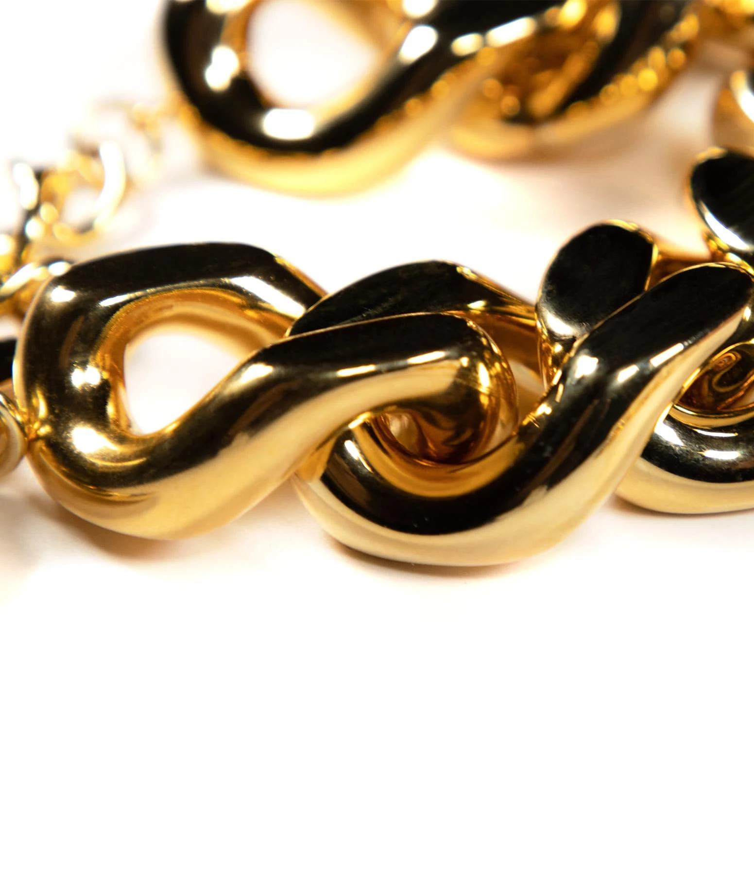 Bracelet à maillons plats dorés brillants. Fermoir à ressort.