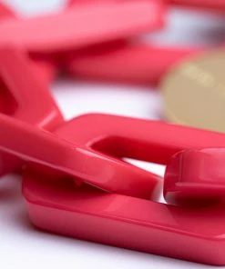Bracelet à maillons plats roses. Fermoir à ressort.