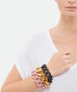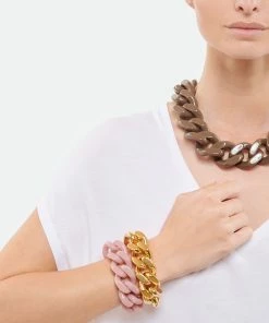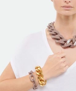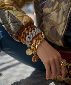 Bracelet doré à gros maillons. Fermoir classique à mousqueton.