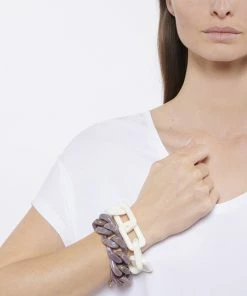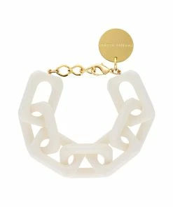 Bracelet blanc à maillons rectangulaires. Fermoir classique à ressort.