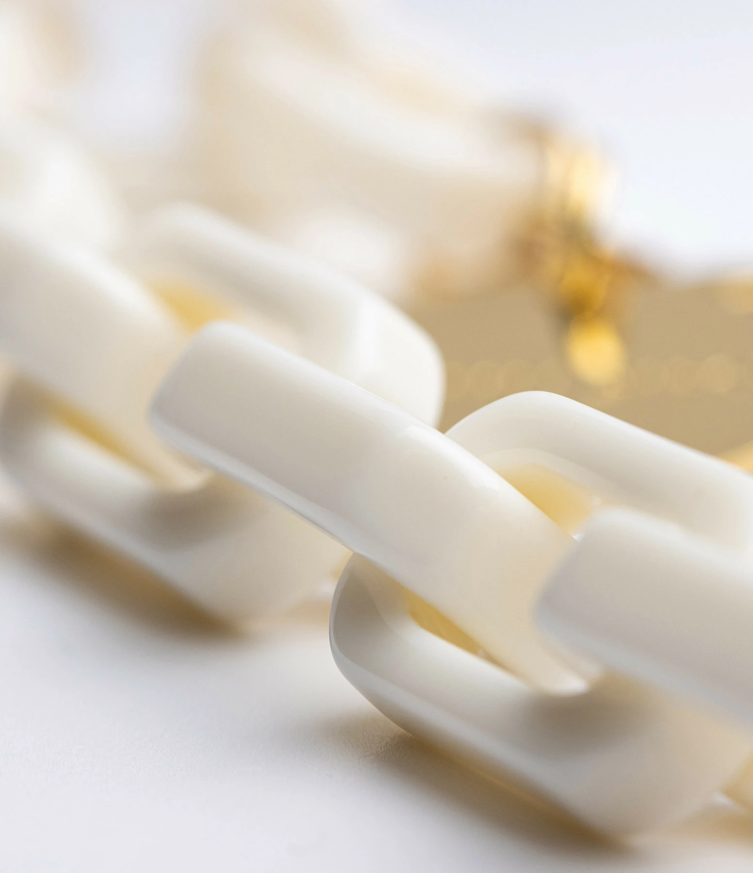 Bracelet à petits maillons rectangulaires écrus. Fermoir classique à ressort.