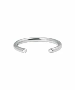 Bague ouverte en or blanc avec deux diamants blancs incrustés.