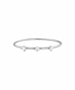 Bague simple en or blanc sertie de trois diamants.