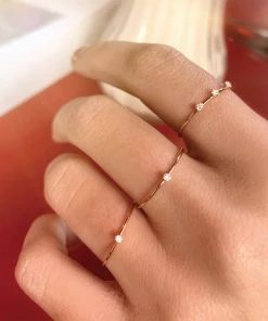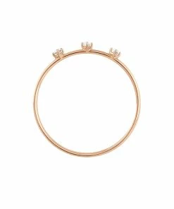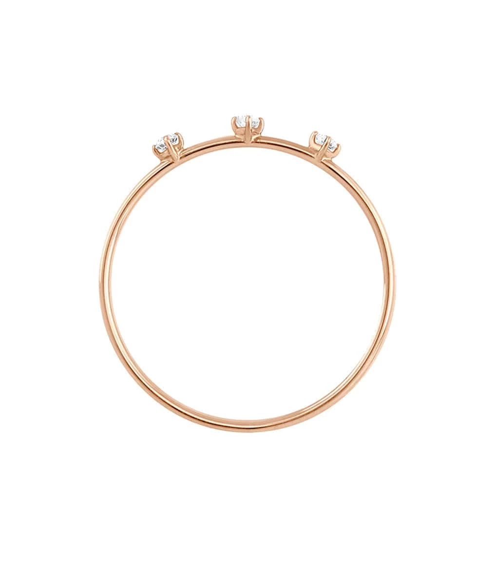 Bague simple en or rose sertie de trois diamants blancs.