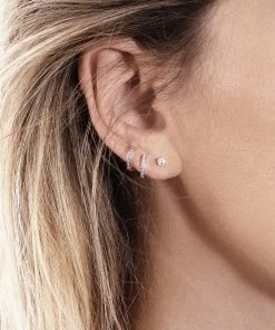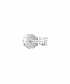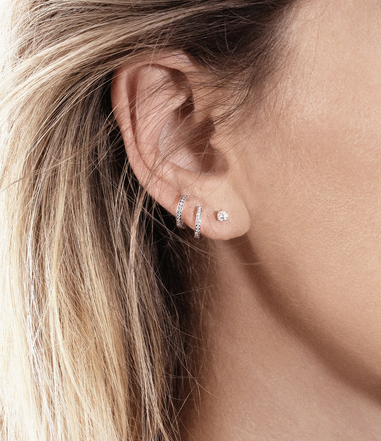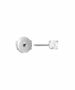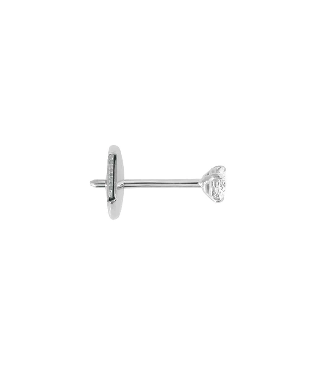 Boucle d’oreille puce en or blanc ornée d’un diamant blanc. Fermoir ALPA sécurisé.