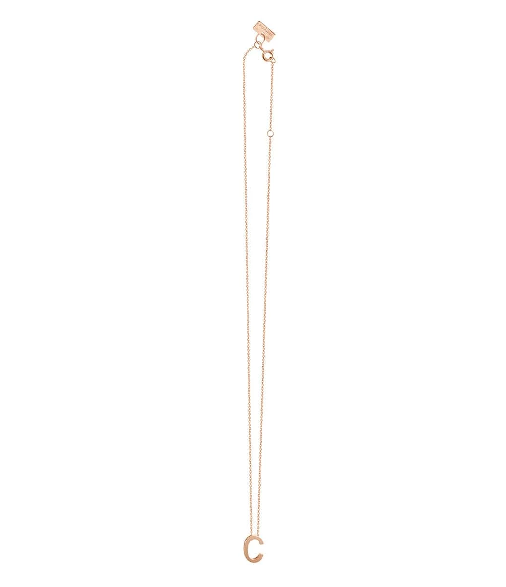 Collier sur chaîne en or rose avec un pendentif lettre. Fermoir classique. Taille ajustable par contre-anneaux.