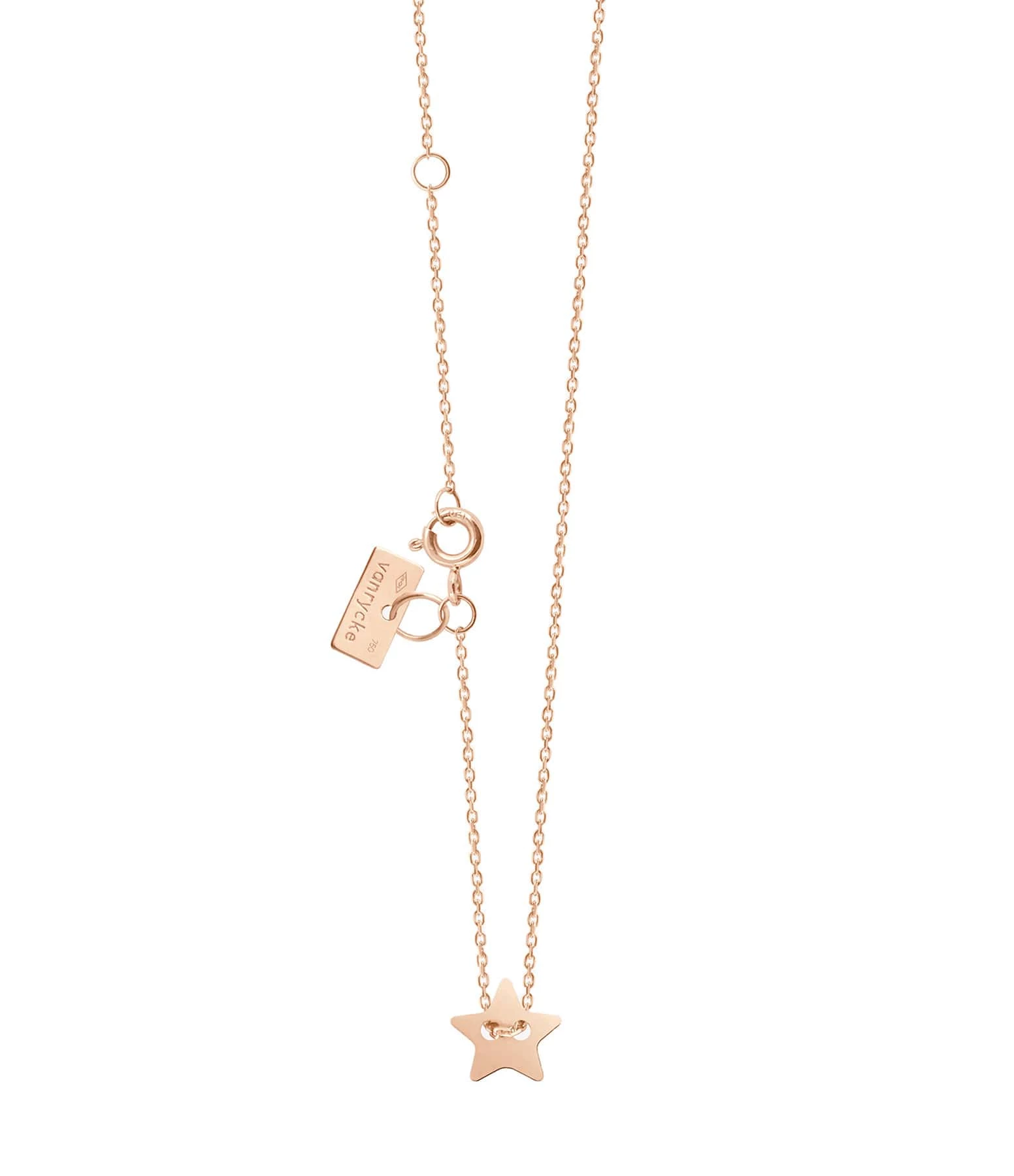 Pendentif en or rose agrémenté d’une étoile polie. Fermoir classique.