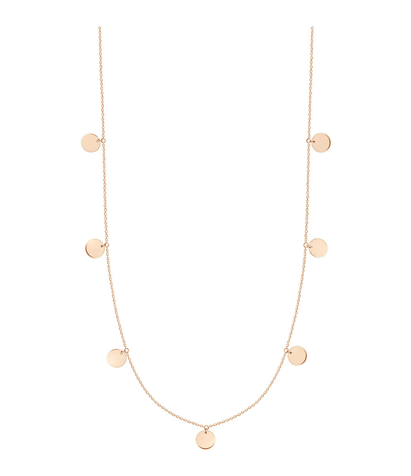 Collier sur chaîne en or rose agrémenté de pastilles. Fermoir classique.