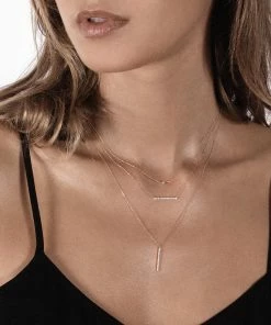 Collier sur chaîne en or rose, barrette sertie de diamants.