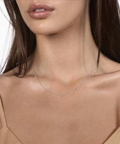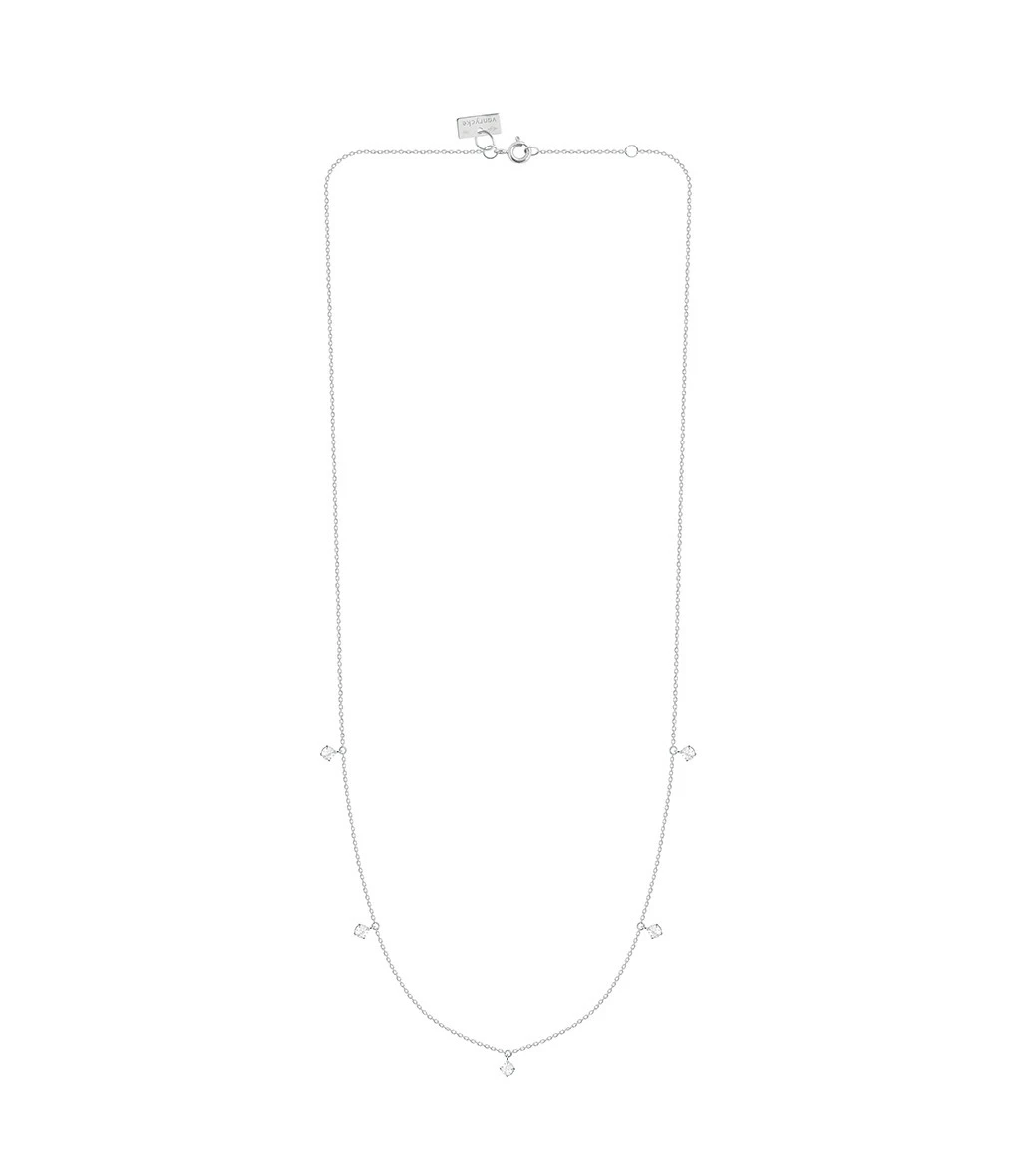 Collier sur chaîne en or blanc, cinq diamants en pendentif.