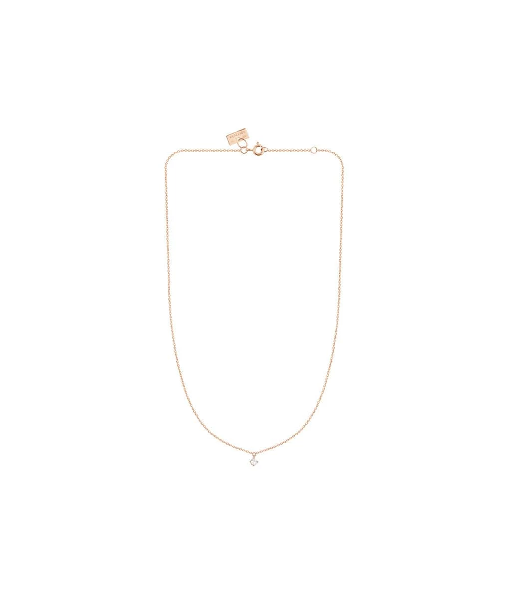 Collier ras-de-cou sur chaîne en or rose, diamant en pendentif. Fermoir classique.