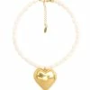 Collier en or rose 18 carats, serti de trois diamants. Fermoir classique.