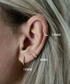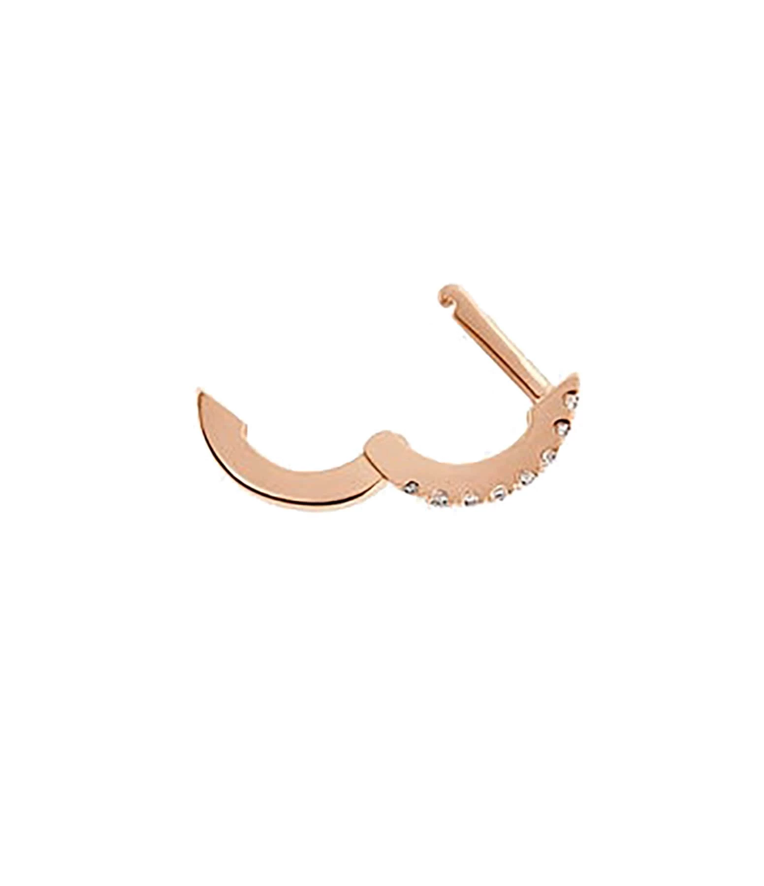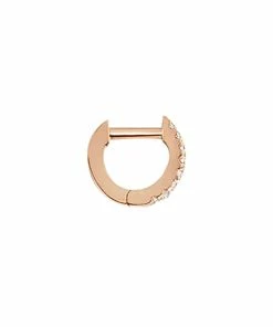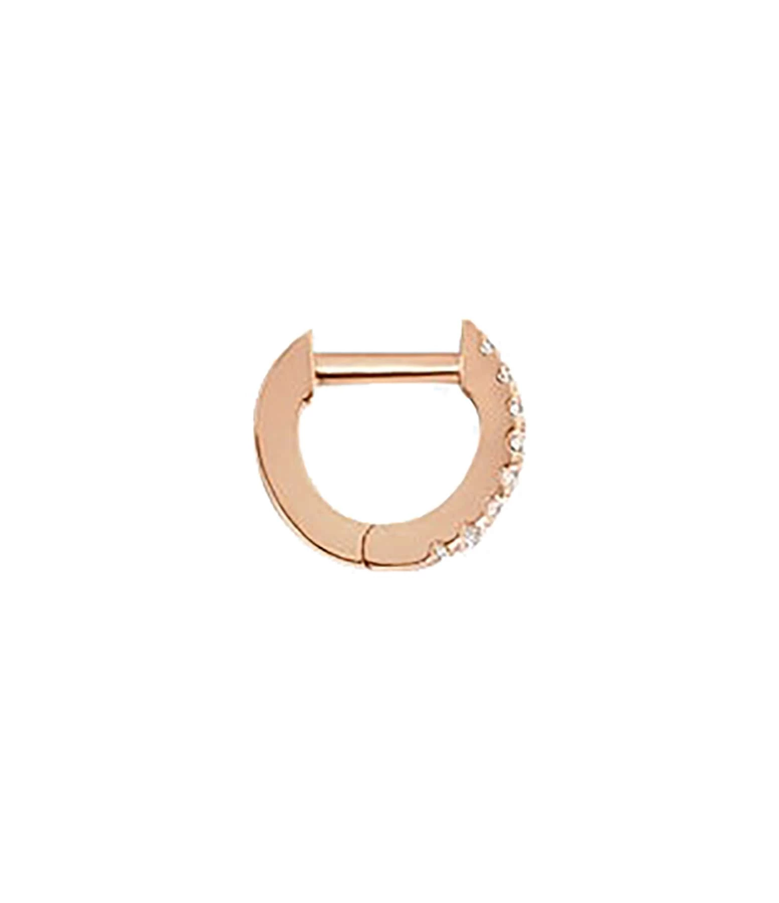 Mini créole en or rose semi-pavée de 8 diamants. Fermoir cliquet.