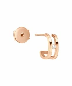 Boucle d’oreille en or rose double créole agrémentée d’un diamant blanc serti. Fermoir Alpa sécurisé.